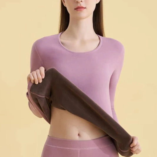 Thick Velvet O-Neck Thermal T-Shirt for Women - Slim Fit Autumn Winter Base Layer Top