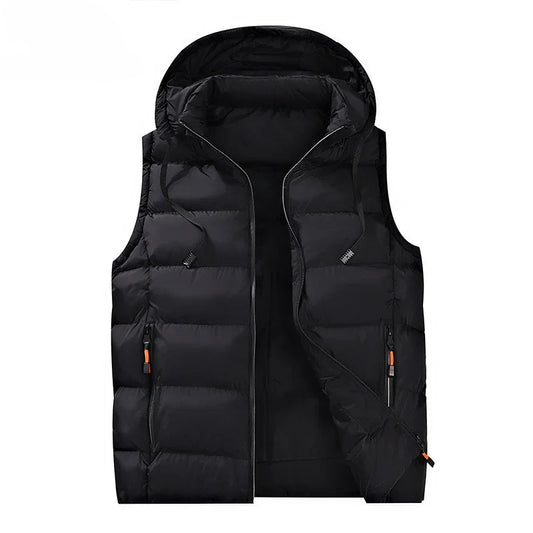 Warm Men’s Hooded Vest - Quilted Polyester, Winter Layering