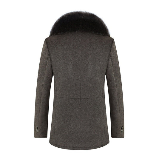 Warm Men's Trench Coat - Single-Breasted, Wool, Winter