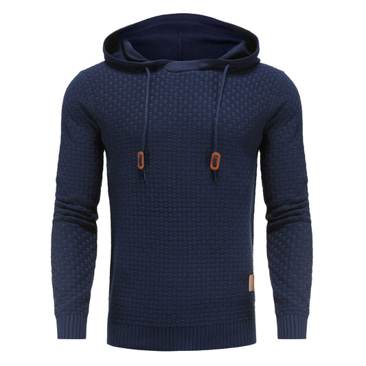 Warm Cozy Men’s Hooded Pullover - Textured Knit, Casual