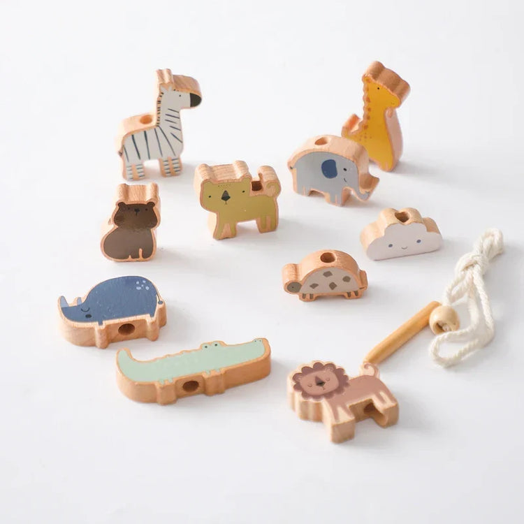 Wooden Stacking Toy Set for Babies and Toddlers, Montessori Animal Threading Toy, Educational Fine Motor Skills Development