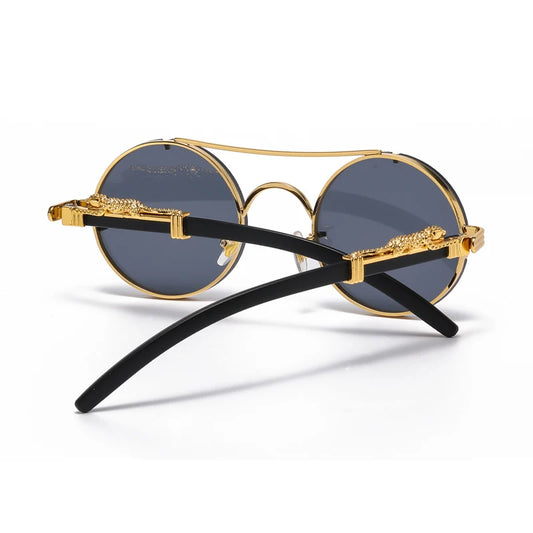 Retro Punk Round Sunglasses for Men & Women - Fashionable Double Bridge Design for Travel and Shopping