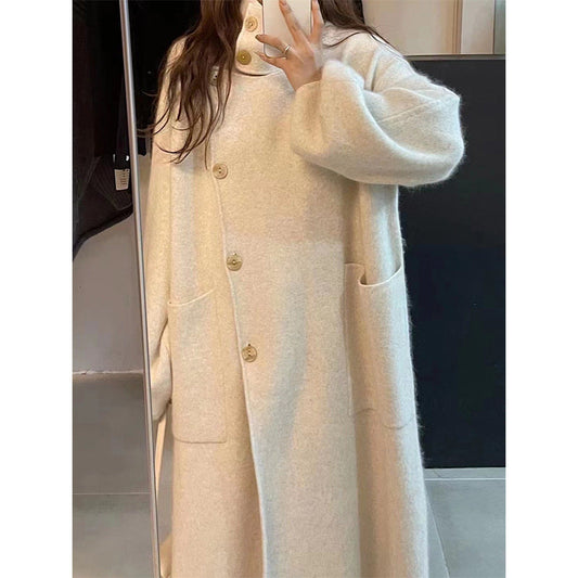 Oversized Women’s Coat – Notched Collar, Wool, For City