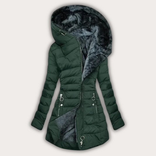 Warm Women's Quilted Jacket - Mid Thigh, Faux Fur Lined