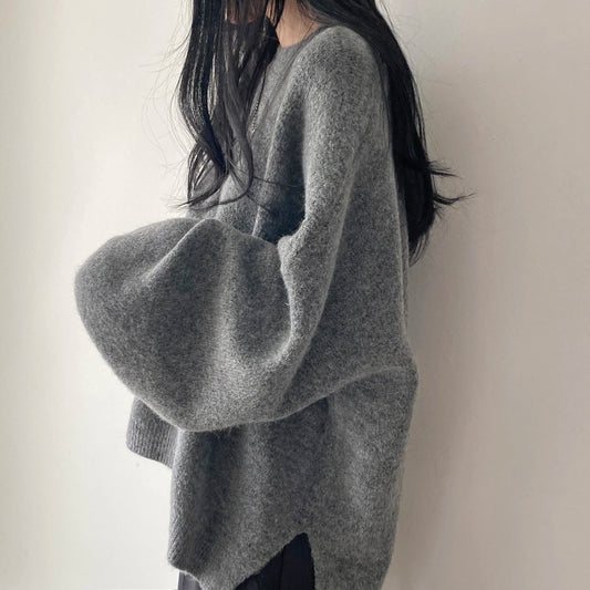 Oversized Cozy Women's Pullover - O Neck, Knit, Office Wear