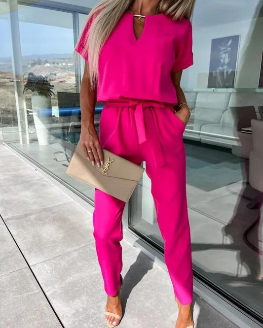 Lightweight & flattering women's jumpsuit – short sleeve, soft fabric, for versatile occasions