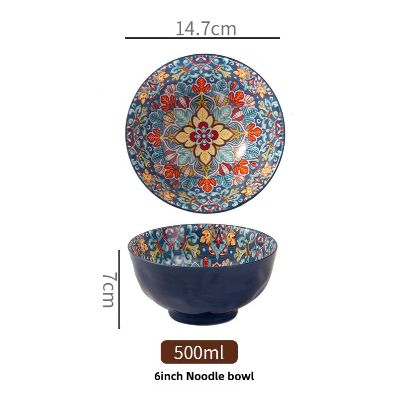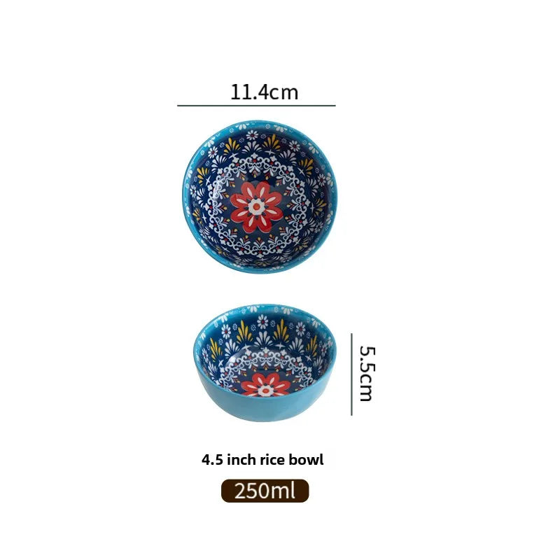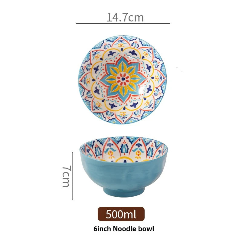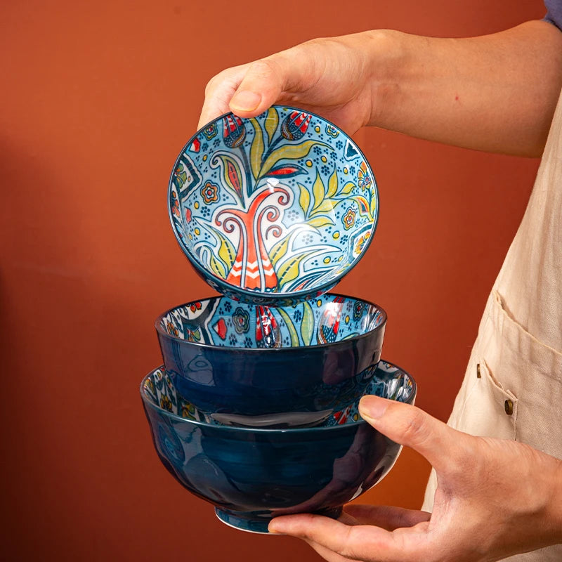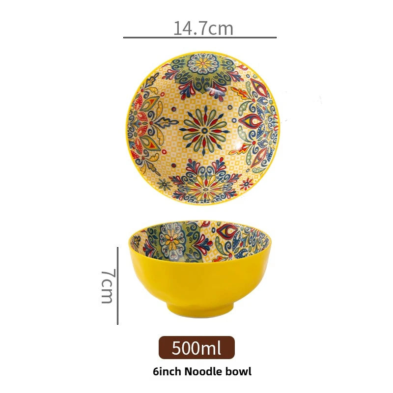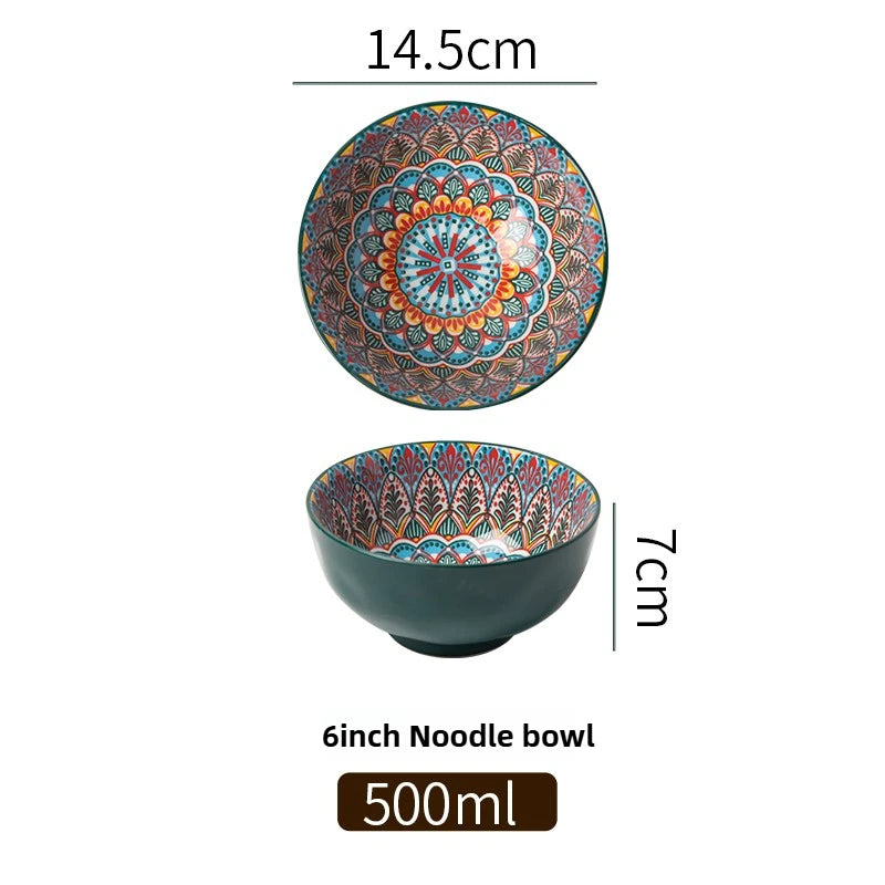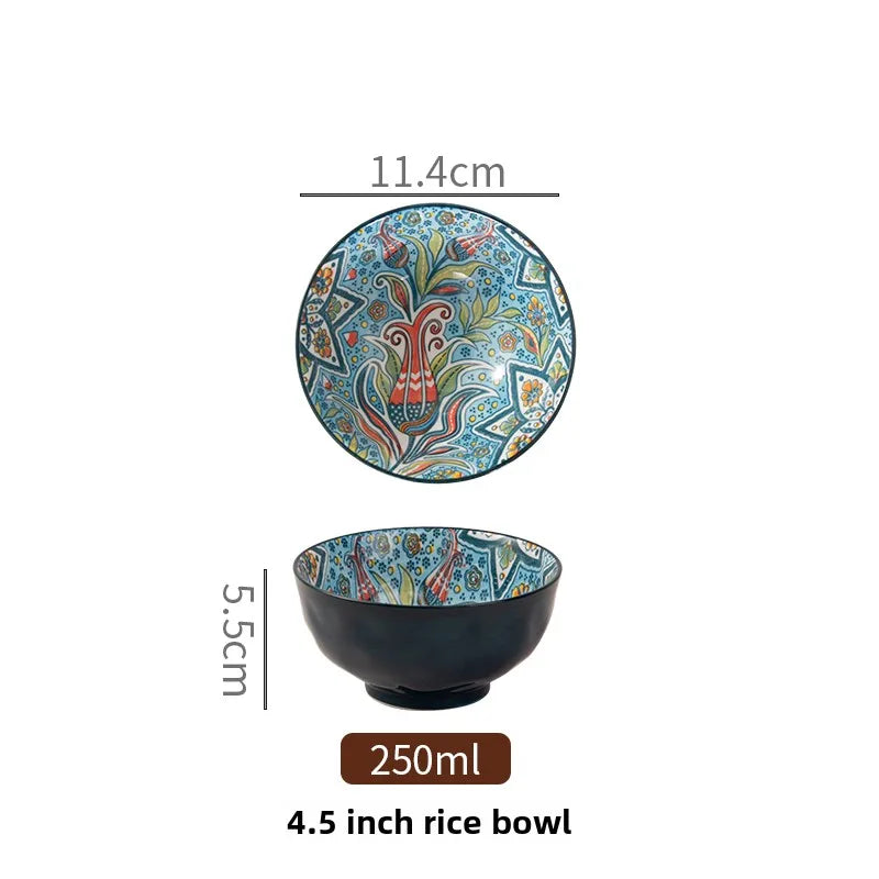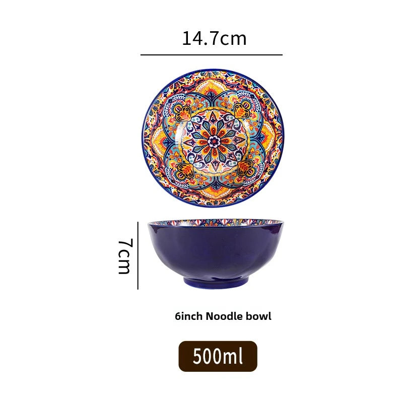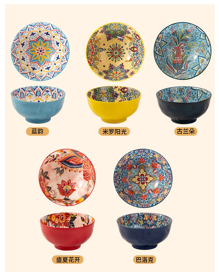 Løft dine daglige måltider med Bohemian Rice Bowl, en keramisk skål designet til ris, nudler og små portioner. Dens retro-inspirerede, boheme-mønstre bringer levende farver til bordet, samtidig med at den bevarer en praktisk, robust form til daglig brug.