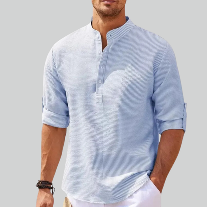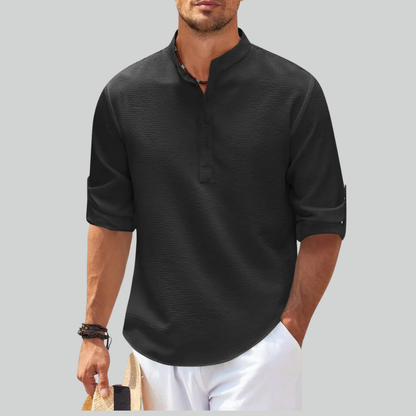 - Højkvalitetsstof: Fremstillet af premium bomuldslin, tilbyder denne skjorte enestående åndbarhed og blødhed, perfekt til varmt vejr.
