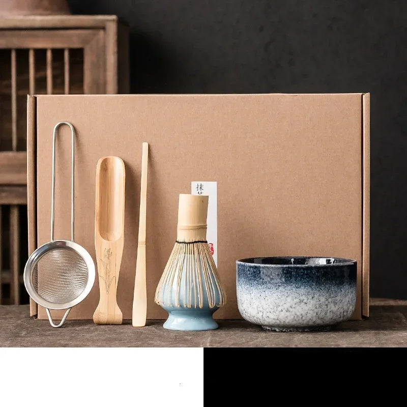 Matcha Tee Set 6-teilig Bambus Keramik Teegeschirr Zeremonie Geschenk