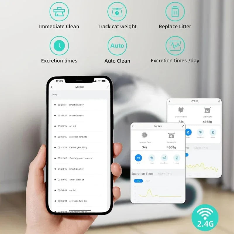 The Automatic Smart Cat Litter Box delivers hands-free, self-cleaning operation through APP control in a fully enclosed unit. The 9L waste bin helps contain litter and odors, while app-based monitoring simplifies maintenance. Durable plastic construction provides long-lasting use.