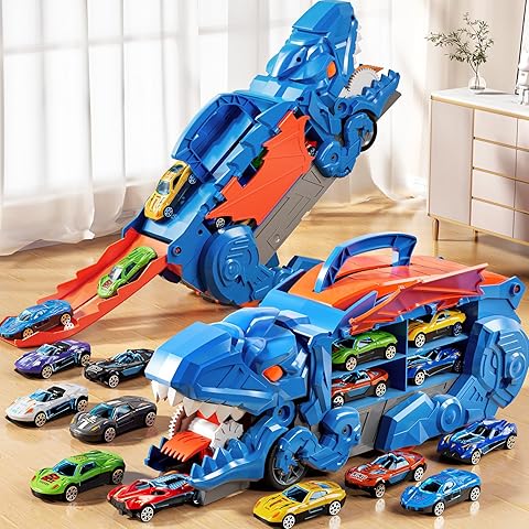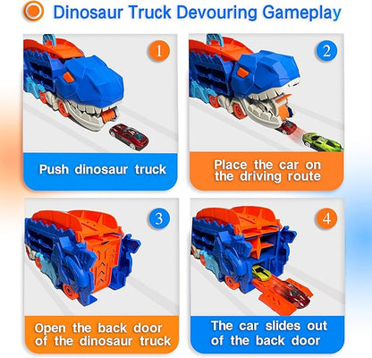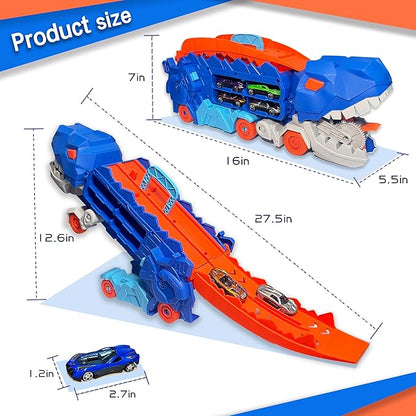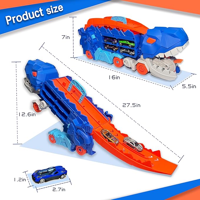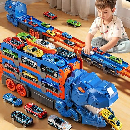 Folding Dinosaur Transporter Car Set - 2 Die-Cast Cars for Competitive Play & Easy Storage