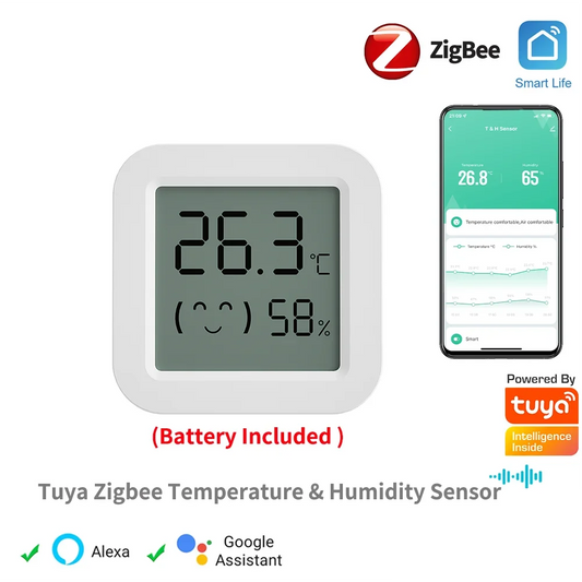 Tuya ZigBee Smart Temperature and Humidity Sensor Battery Powered for Smart Home Security with Alexa and Google Home