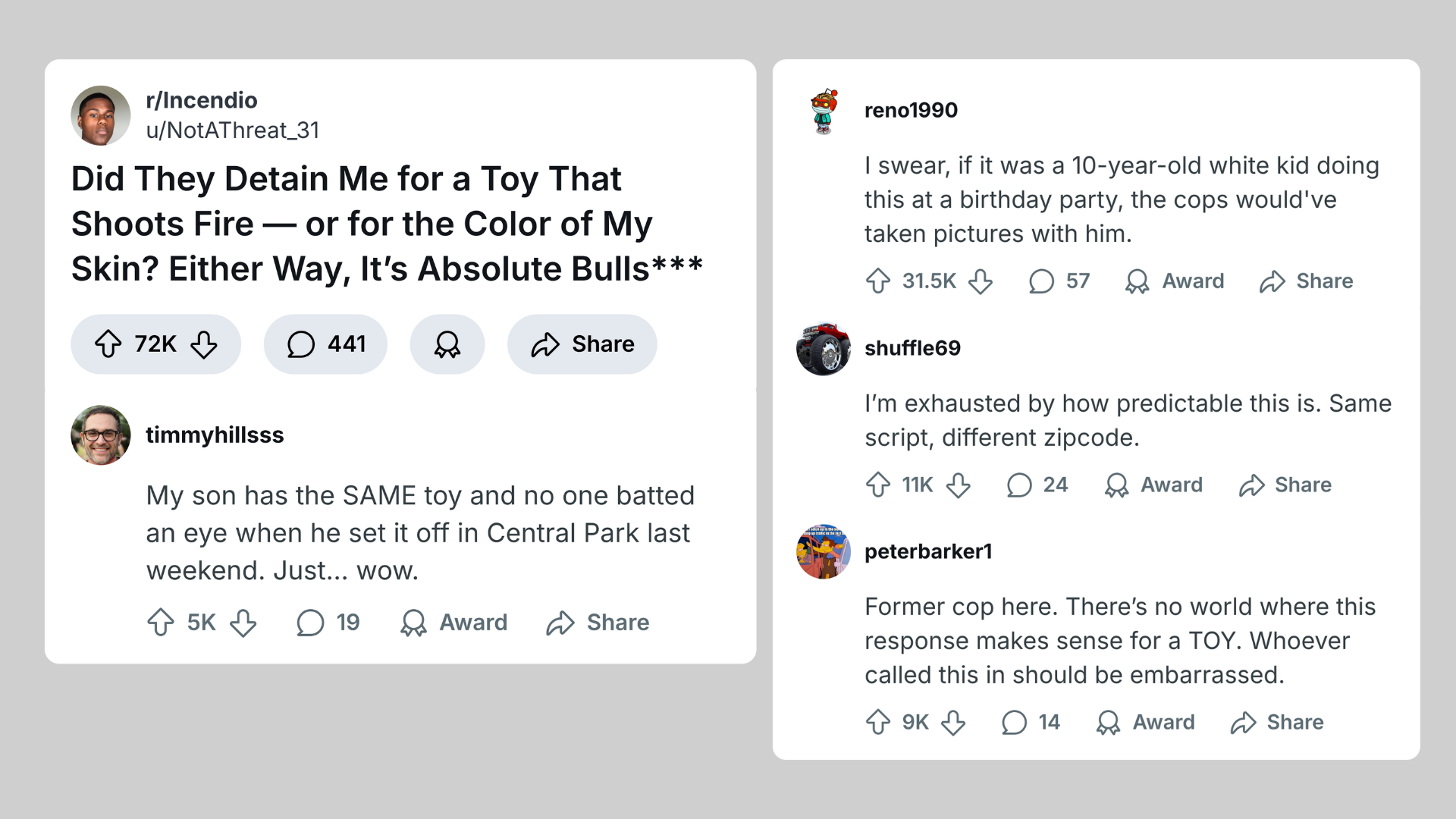 Black Man’s Viral Reddit Post Asks: Did They Detain Me for a Toy That Shoots Fire — or for the Color of My Skin? Either Way, It’s Absolute Bulls***