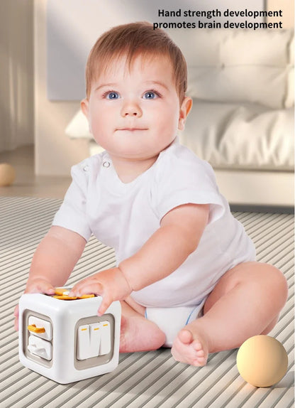 Montessori 6-in-1 Sensory Cube Toy - Educational Busy Board for Babies, Fidget Skills Development, 3.5-inch Activity Cube for Boys and Girls