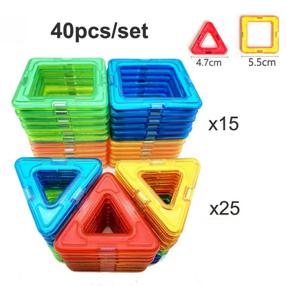 Educational Magnetic Building Blocks Set - 40-Piece Colorful Constructor Toys for Kids, Triangle & Square Shapes, Fun Learning Activity