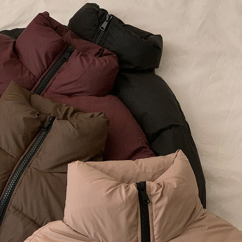 This cropped stand-collar coat combines a boxy, ultra-short silhouette with plush bread-style quilting to create a modern, streetwise look perfect for transitional fall and winter layering. The high stand collar and full-length zipper deliver a streamlined, commute-ready fit while the padded polyester construction enhances both warmth and lightweight comfort. Minimalist details — invisible side pockets and a drawcord hem — add a contemporary twist to an otherwise classic puffer. Ideal for trend-forward women seeking a versatile layer that moves effortlessly from daytime errands to relaxed evenings out.