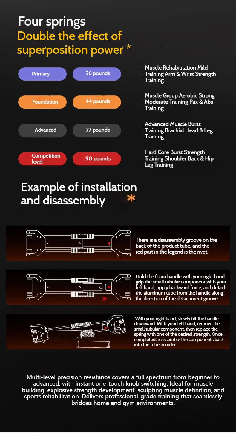 The 2025 Adjustable Muscle Trainer Full Body Resistance Bands is a versatile home workout system that uses resistance bands to train the entire body. It supports exercises for the waist, arms, legs, core, and glutes, making it suitable for men and women who want an all-in-one training solution at home or while traveling.