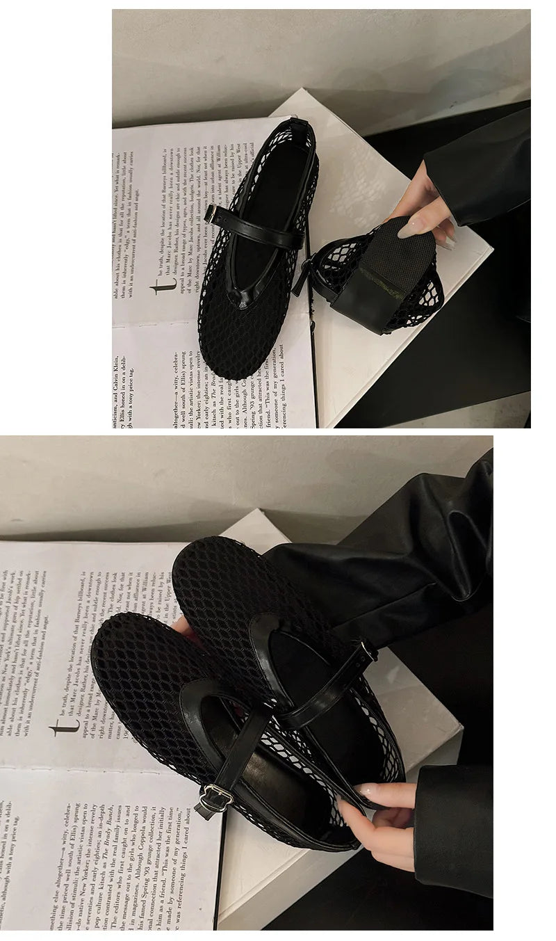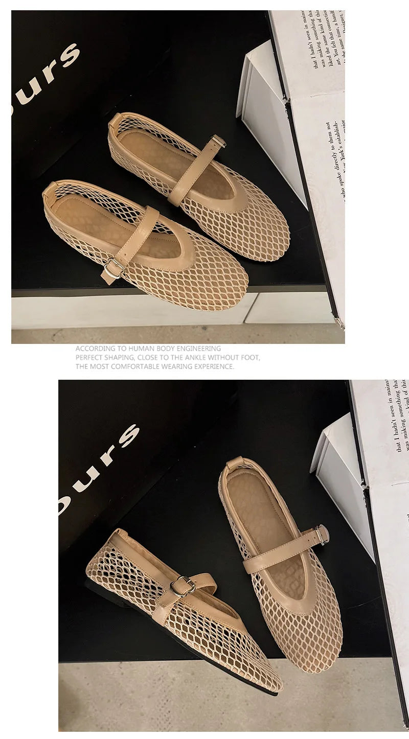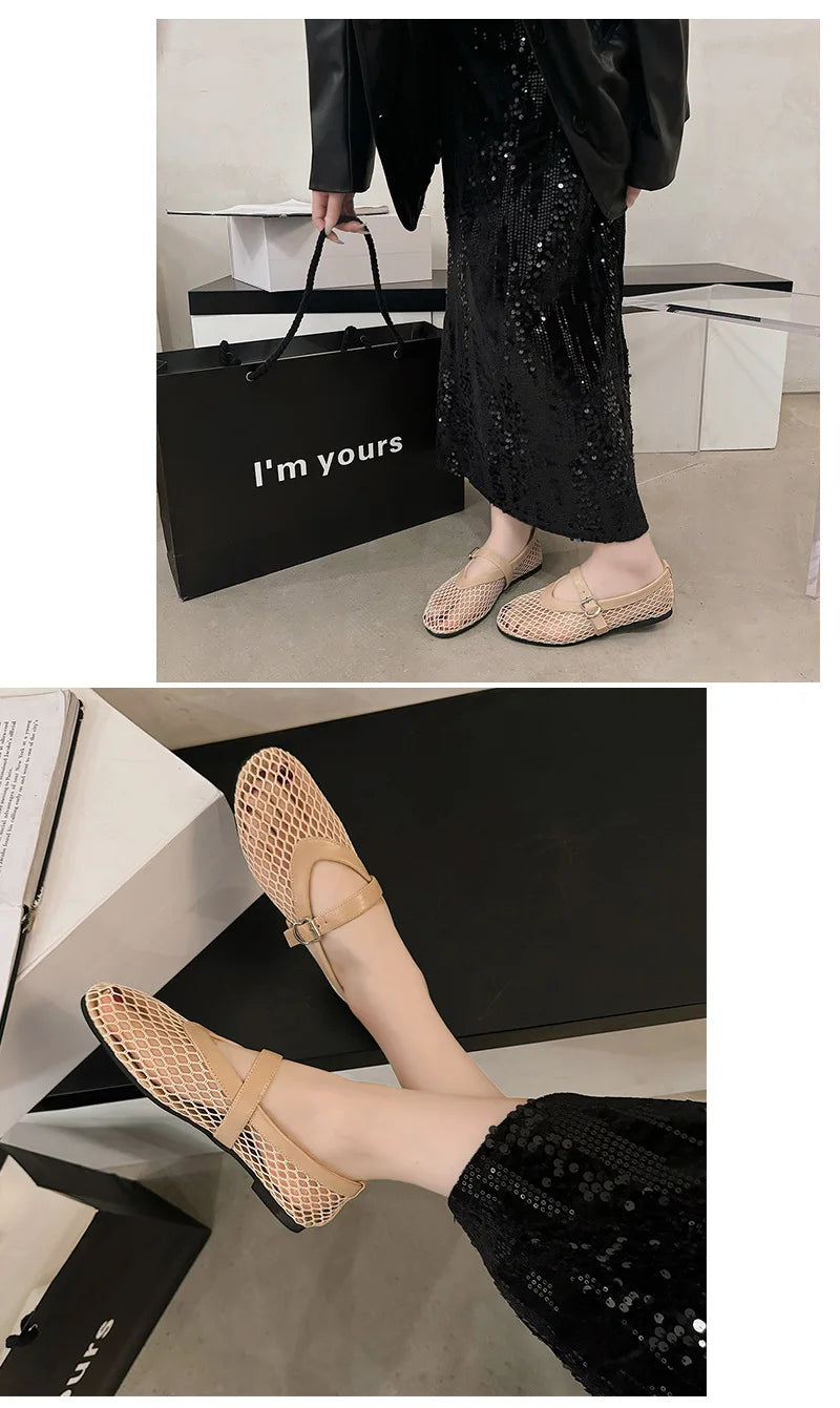 Esta bailarina transpirable de malla combina una silueta clásica de punta redonda con una parte superior de red aireada y una correa con hebilla segura para crear un look moderno y ligero, perfecto para la moda urbana de primavera y verano. La suela suave y la plantilla de espuma de látex mejoran la comodidad durante todo el día, mientras que las líneas mínimas y femeninas añaden un toque pulido pero sin esfuerzo. Ideal para caminar a diario, salidas casuales y estilo urbano en clima cálido, este zapato aporta un toque fresco y a la moda a los conjuntos cotidianos.