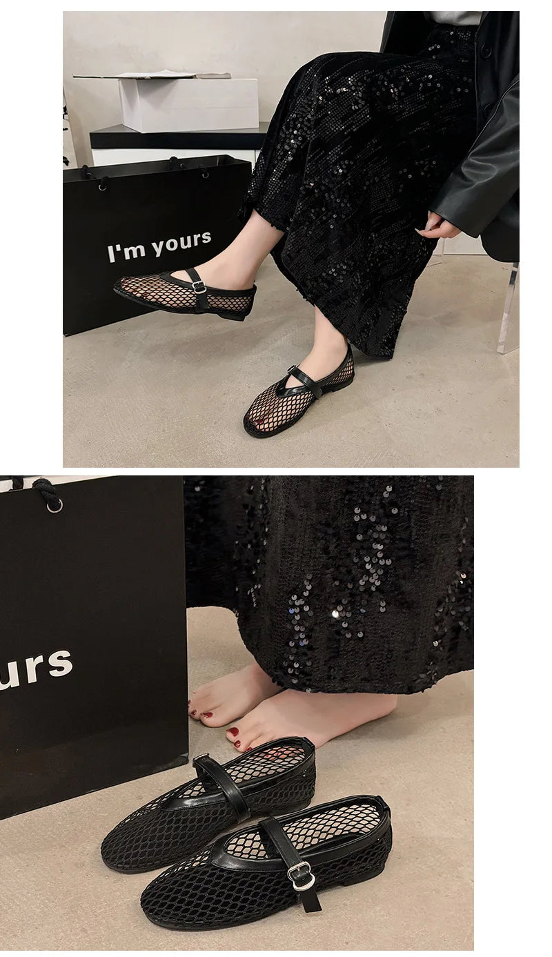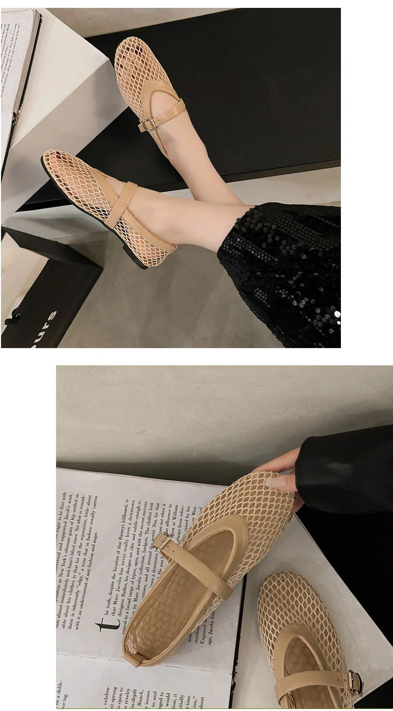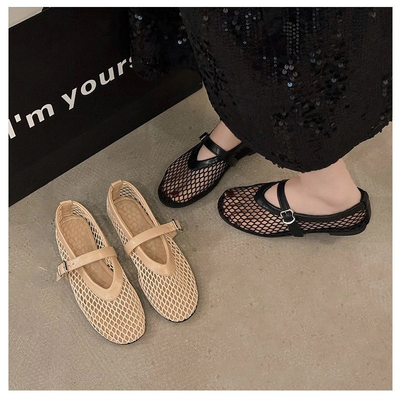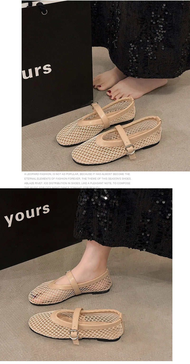 Esta bailarina transpirable de malla combina una silueta clásica de punta redonda con una parte superior de red aireada y una correa con hebilla segura para crear un look moderno y ligero, perfecto para la moda urbana de primavera y verano. La suela suave y la plantilla de espuma de látex mejoran la comodidad durante todo el día, mientras que las líneas mínimas y femeninas añaden un toque pulido pero sin esfuerzo. Ideal para caminar a diario, salidas casuales y estilo urbano en clima cálido, este zapato aporta un toque fresco y a la moda a los conjuntos cotidianos.