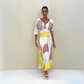 Este elegante vestido largo de verano está diseñado para la comodidad y el estilo, convirtiéndolo en un imprescindible para tu guardarropa de clima cálido. Con su escote juguetón y mangas tres cuartos, pasa sin esfuerzo de salidas casuales a ocasiones especiales.