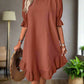 Vestido elegante con volantes y mangas tres cuartos, vestido formal versátil para invitadas de boda y cócteles de verano