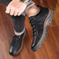 Zapatos de ocio de cuero cosidos a mano para hombres, impermeables, cómodos, con suela de goma antideslizante, ligeros para actividades al aire libre
