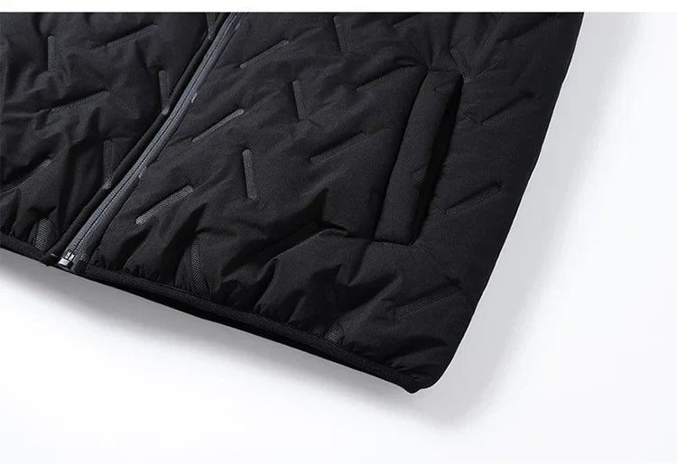 This men's padded vest combines a streamlined slim silhouette with a high standing (turtleneck) collar and a full-length zipper to create a modern, layered look perfect for autumn and winter. The quilted outer shell and plush sherpa-style lining deliver both insulation and contemporary texture, while discreet zip pockets add functional detailing. Ideal for city commuters and weekend explorers alike, this waistcoat reads casual yet refined — versatile enough to style over knits or under a heavier coat for extra warmth.