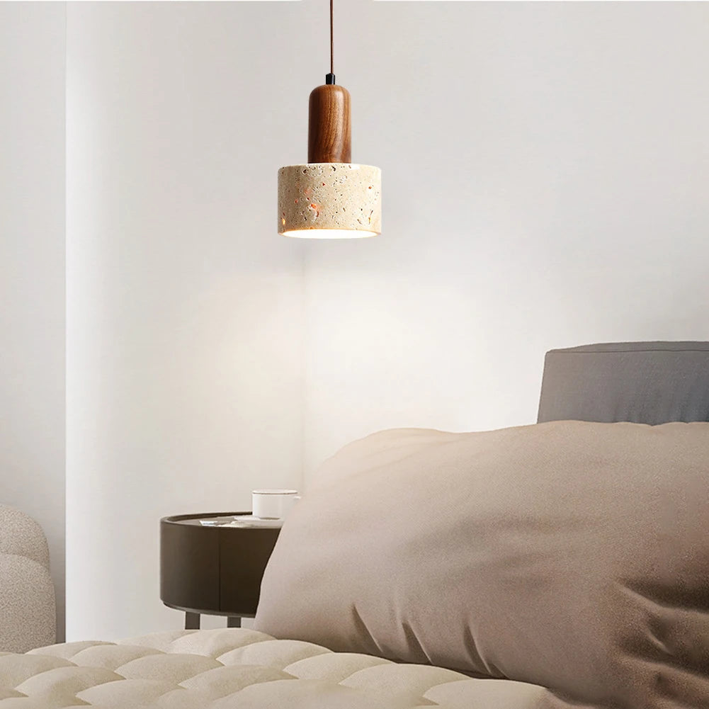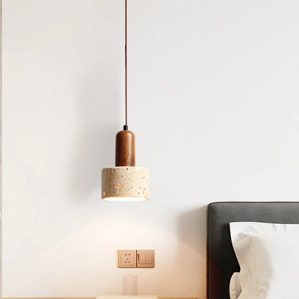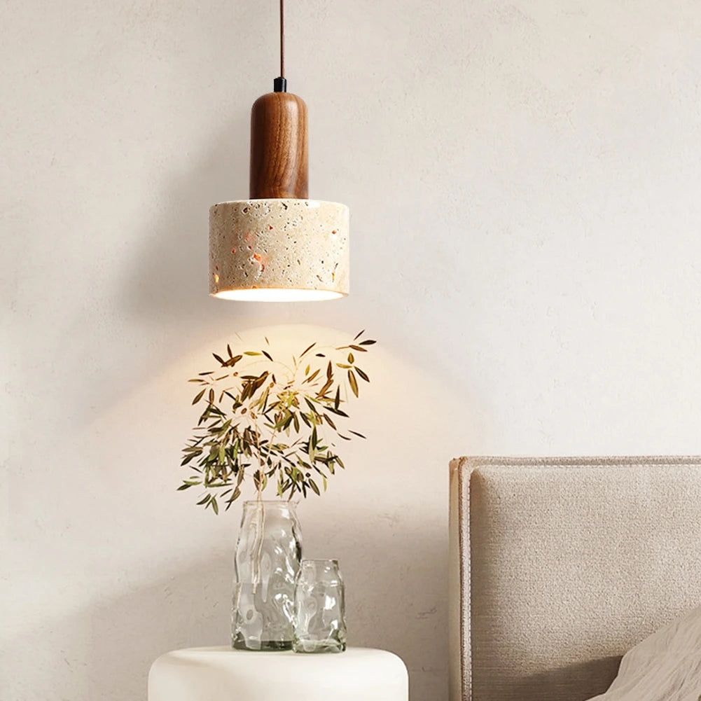 Lámpara colgante japonesa Japandi de madera y lámpara de noche de travertino