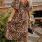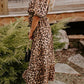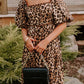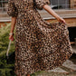 Vestido Maxi de Estampado de Leopardo con Mangas Abullonadas, Diseño Fruncido, Vestido Largo para Mujer, Estilo Casual Chic