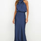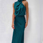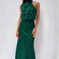 Vestido Formal Largo de Satén con Cuello Halter para Bodas y Ocasiones Elegantes, Vestido de Noche de Largo Completo