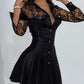 Vestido negro de mujer con mangas largas y contraste de encaje, silueta favorecedora para trabajo y uso casual