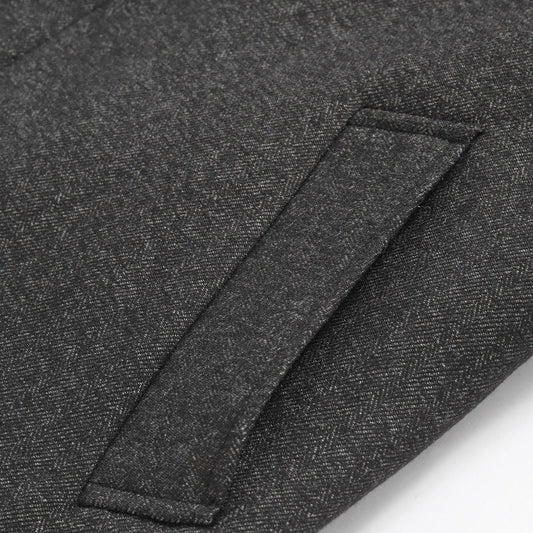 Insulating Men's Overcoat - Tailored Herringbone, Wool, Work