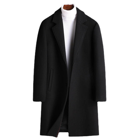Warm Men’s Mid-Length Wool Jacket - Cozy Lapel, Winter