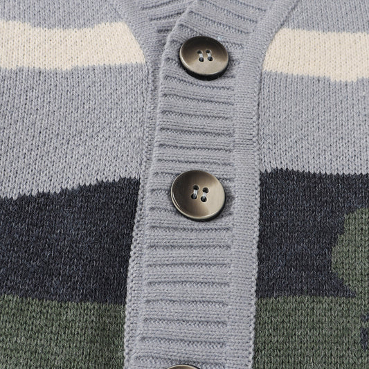 Oversized Relaxed Unisex Cardigan - V Neck Knit Jacquard