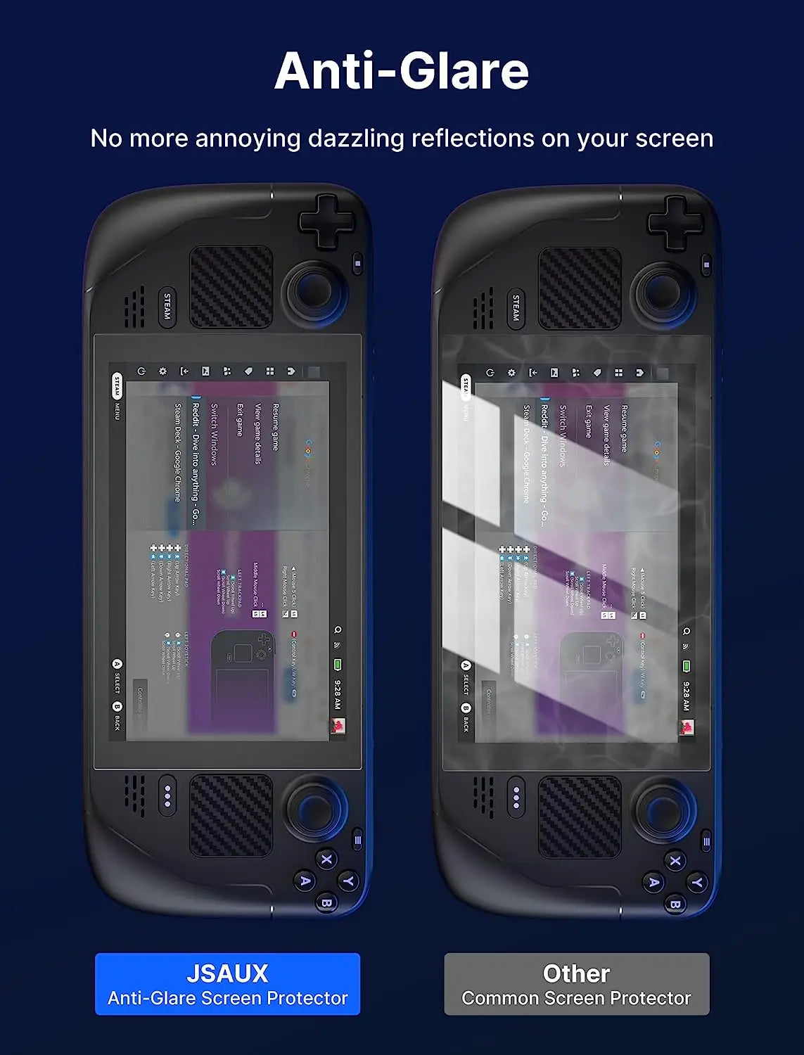 Protector de pantalla antirreflejo 2-pack para Steam Deck OLED protege tu pantalla con un acabado mate de vidrio templado que reduce los reflejos y protege contra arañazos. El kit incluye herramientas de instalación para un ajuste rápido y preciso, para que puedas disfrutar de imágenes más claras durante intensas sesiones de juego en el Steam Deck OLED.