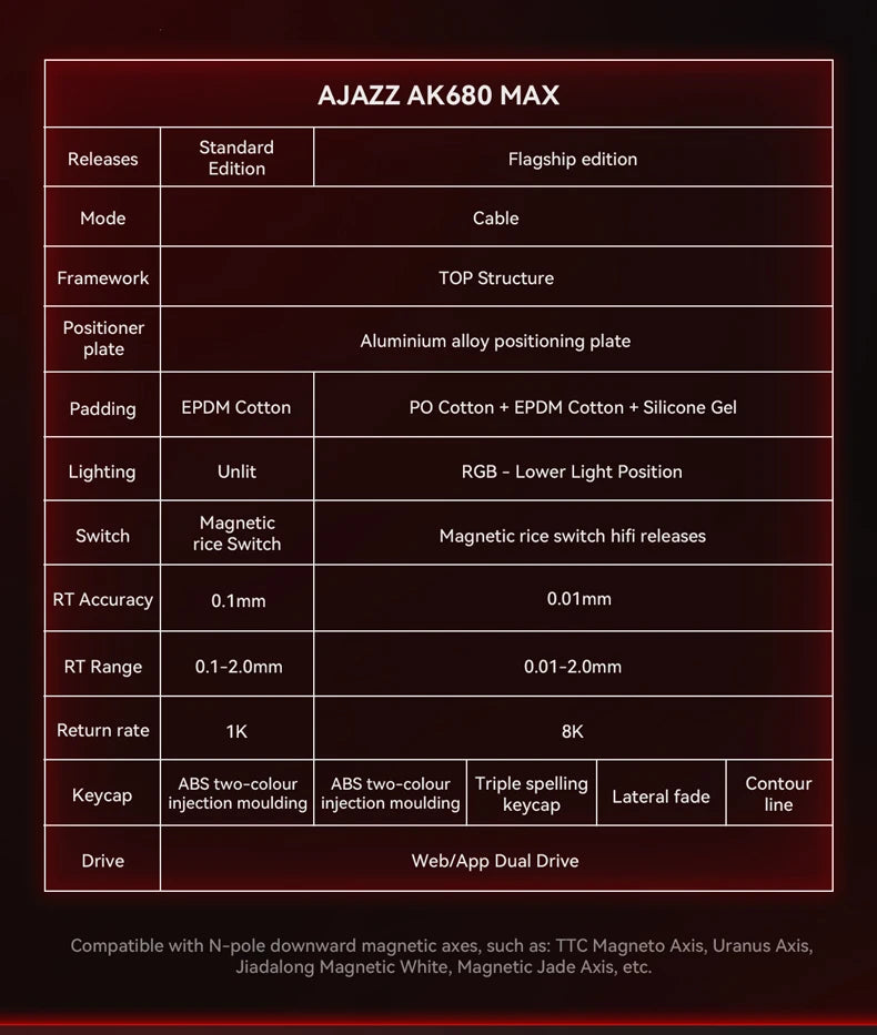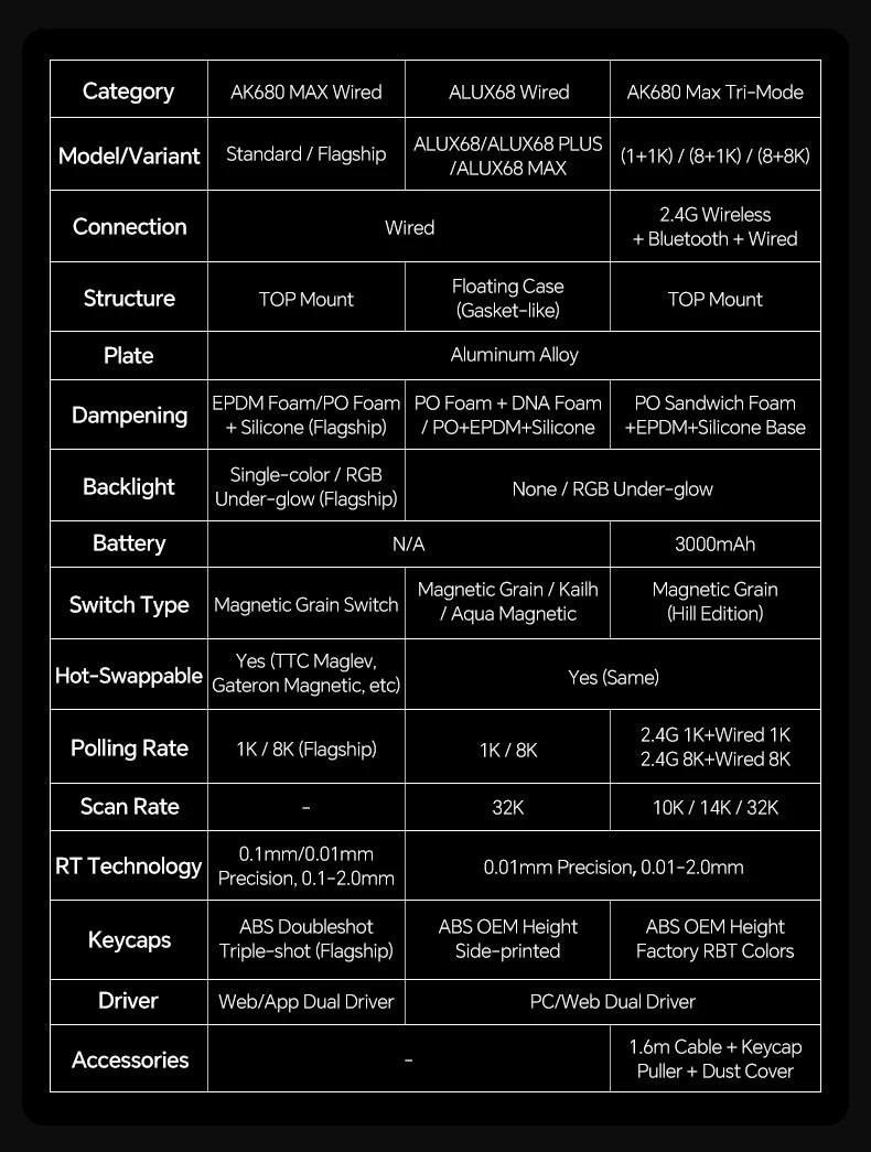El teclado mecánico AK680 MAX con interruptores HE Hall Effect ofrece un diseño compacto del 60% construido para pulsaciones precisas y rápidas. Soporta conexiones por cable USB y Bluetooth inalámbrico, con iluminación ARGB multicolor para mejorar las sesiones de juego. Su diseño magnético de activación rápida y chasis optimizado maximizan la capacidad de respuesta en configuraciones de escritorio.