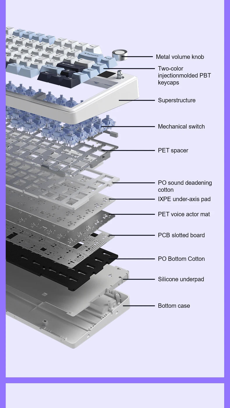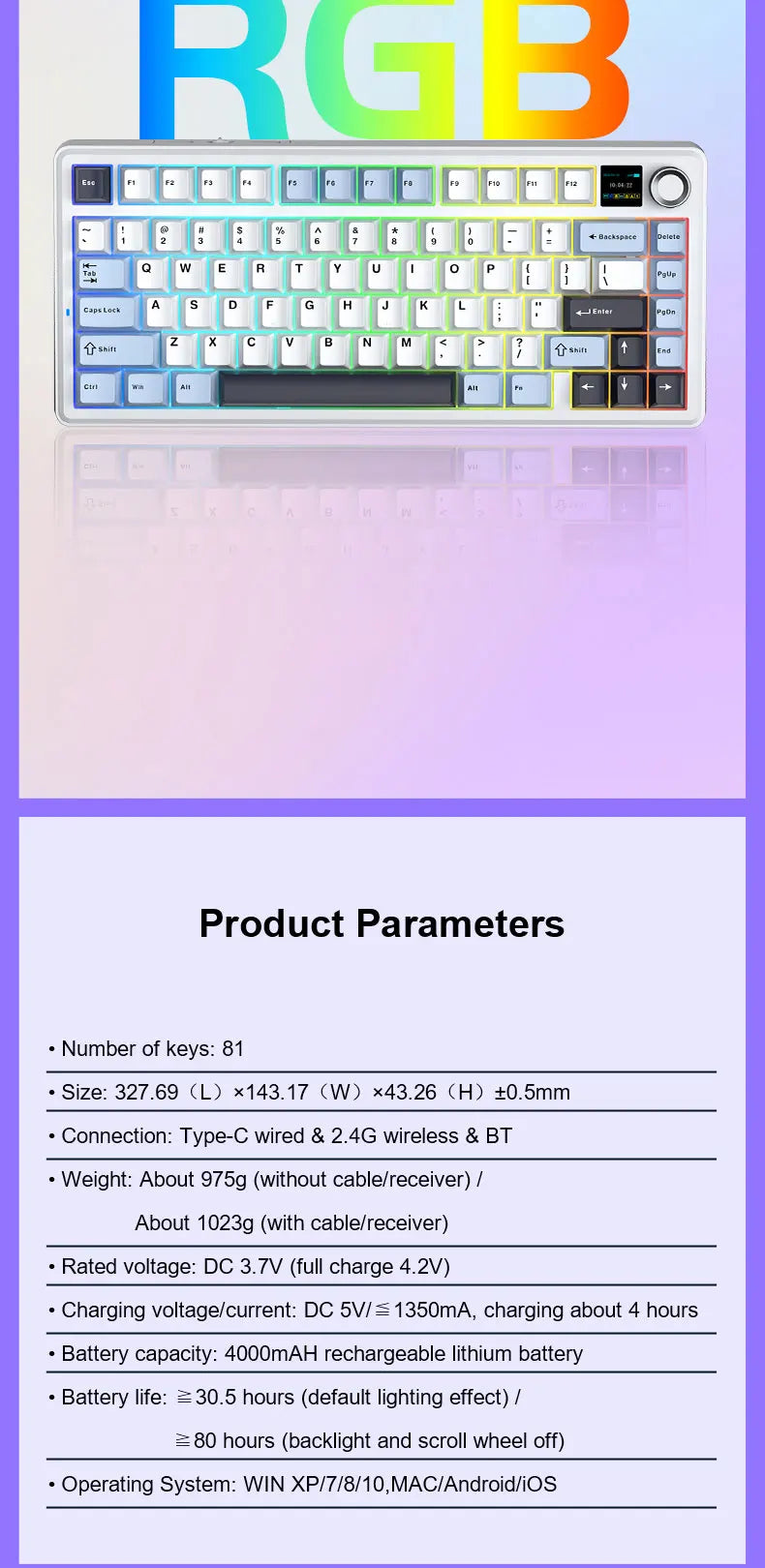 Teclado mecánico para juegos 75% Hot Swap RGB TFT inalámbrico