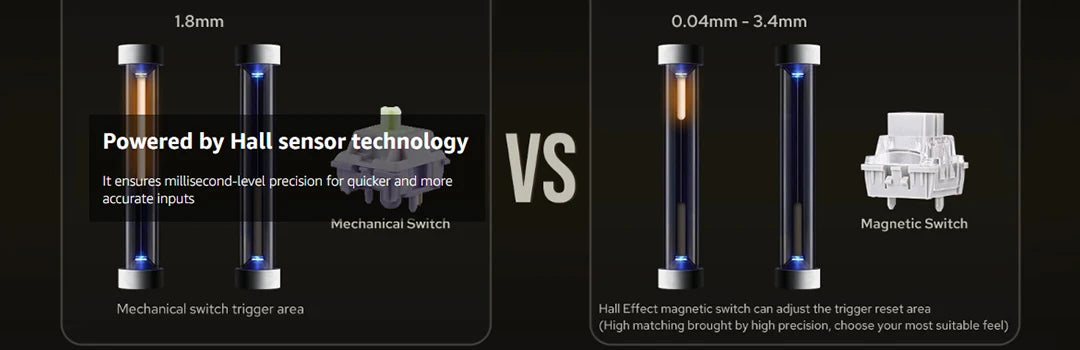 - Interruptores Hall Effect con distancia de activación ajustable para una sensación de escritura personalizada