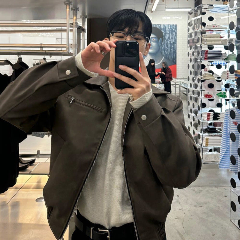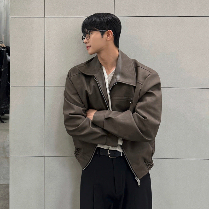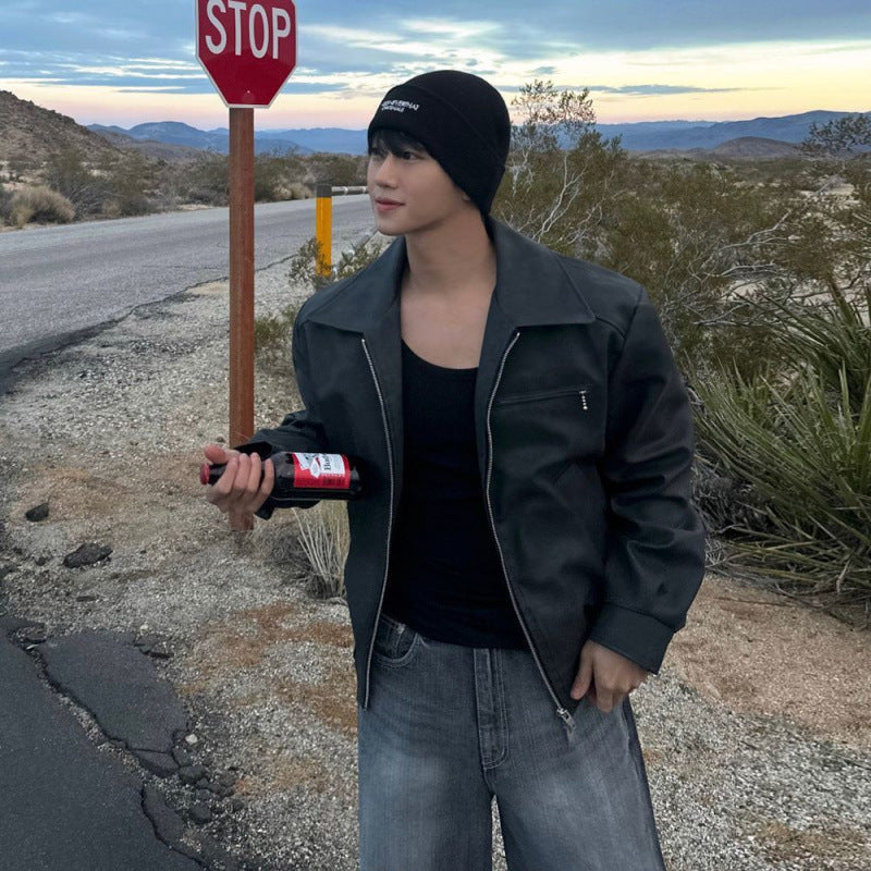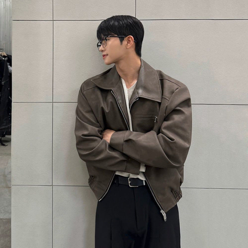 Esta chaqueta de cuero estilo motociclista con solapa combina un cuello de solapa audaz con un cierre frontal con cremallera para crear un look atrevido perfecto para el uso casual en la ciudad y las estaciones de transición. La construcción en cuero PU mejora tanto la comodidad como el estilo, mientras que el bolsillo con cremallera en el pecho añade un giro moderno. Ideal para jóvenes a la moda y amantes del estilo callejero, esta prenda ofrece versatilidad de día y de noche.