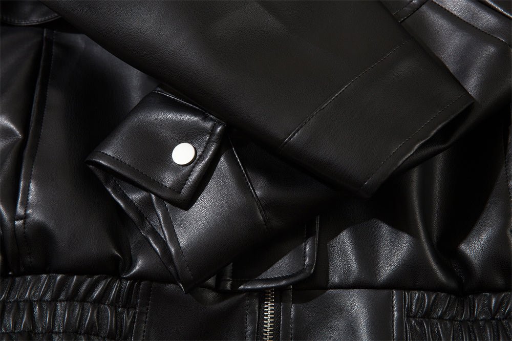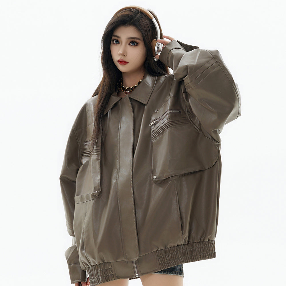 Esta chaqueta de cuero PU inspirada en motocicletas combina un cuello estructurado con detalles de bolsillos con cremallera para crear un look audaz y vanguardista, perfecto para la primavera y el uso casual en otoño. El cuero PU suave y flexible y el dobladillo recto mejoran la comodidad y el estilo, mientras que el hardware metálico añade un toque moderno. Ideal para los que marcan tendencia y amantes del estilo urbano, esta prenda transita sin esfuerzo del día a la noche.