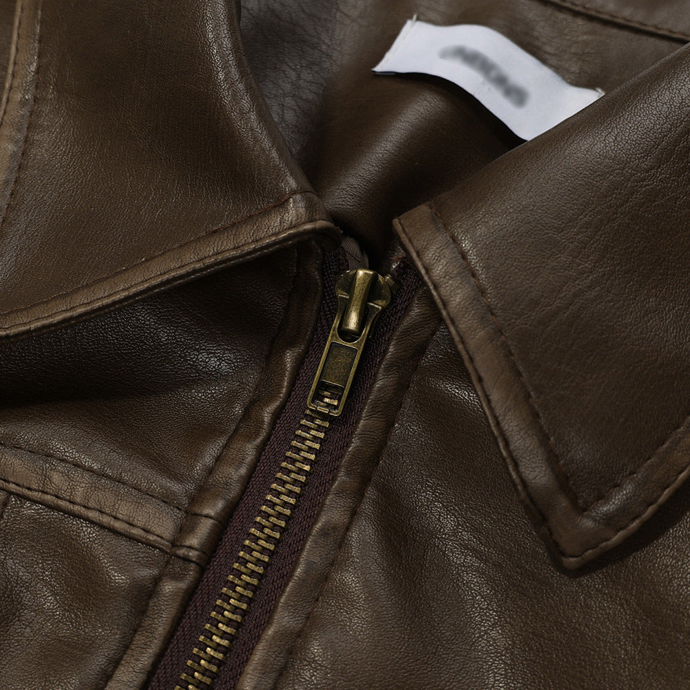 Esta chaqueta combina cuero PU desgastado con una solapa acolchada para crear un look rudo y biker-chic, perfecto para salidas casuales y temporadas de transición. El corte de longitud media y el cierre frontal con cremallera mejoran tanto la comodidad como el estilo, mientras que los bolsillos con cremallera en el pecho añaden un giro moderno. La estética general es atrevida pero ponible, diseñada para amantes del estilo que buscan una prenda versátil para usar de día y de noche.