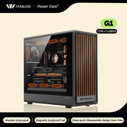 Boîtier PC MATX Panneau en bois Verre trempé Port Type C
