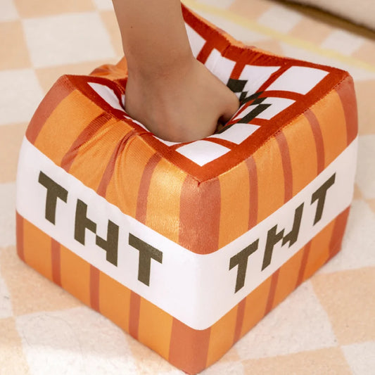 Coussin décoratif en forme de bloc d'herbe TNT, jouet en peluche doux pour la décoration de salle de jeux, 12x12 pouces, vert et marron