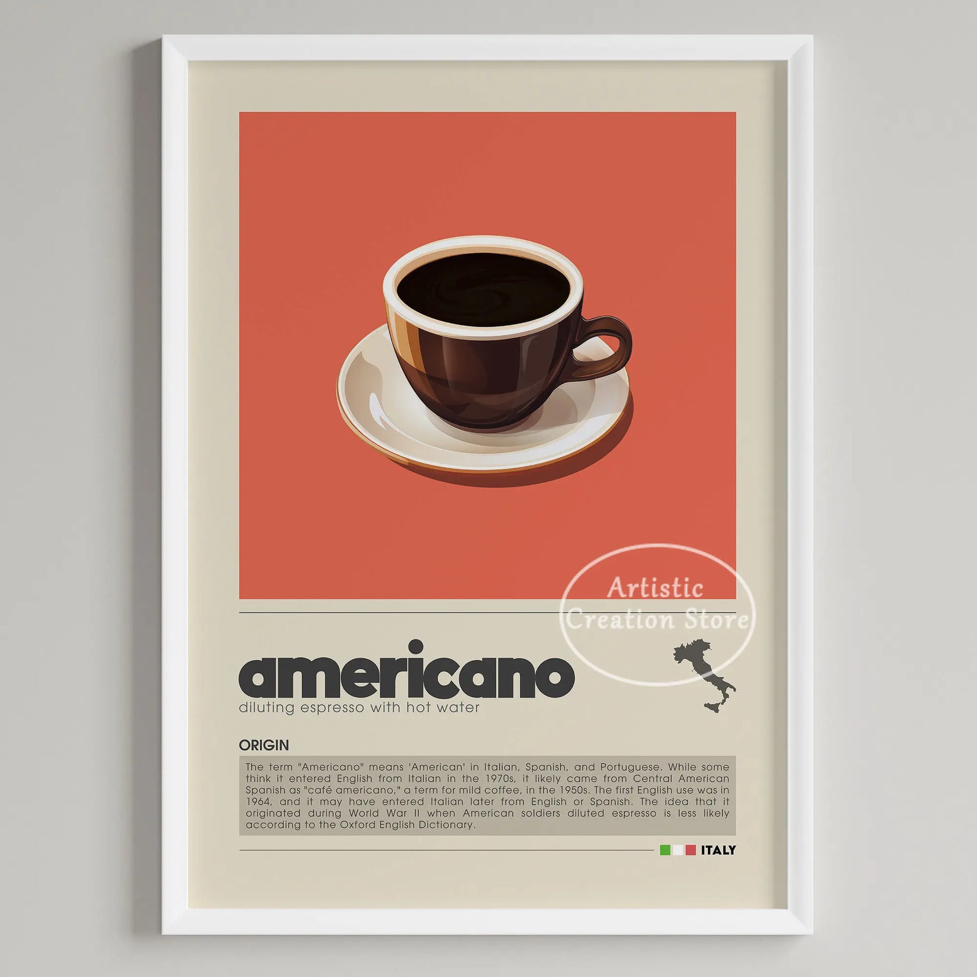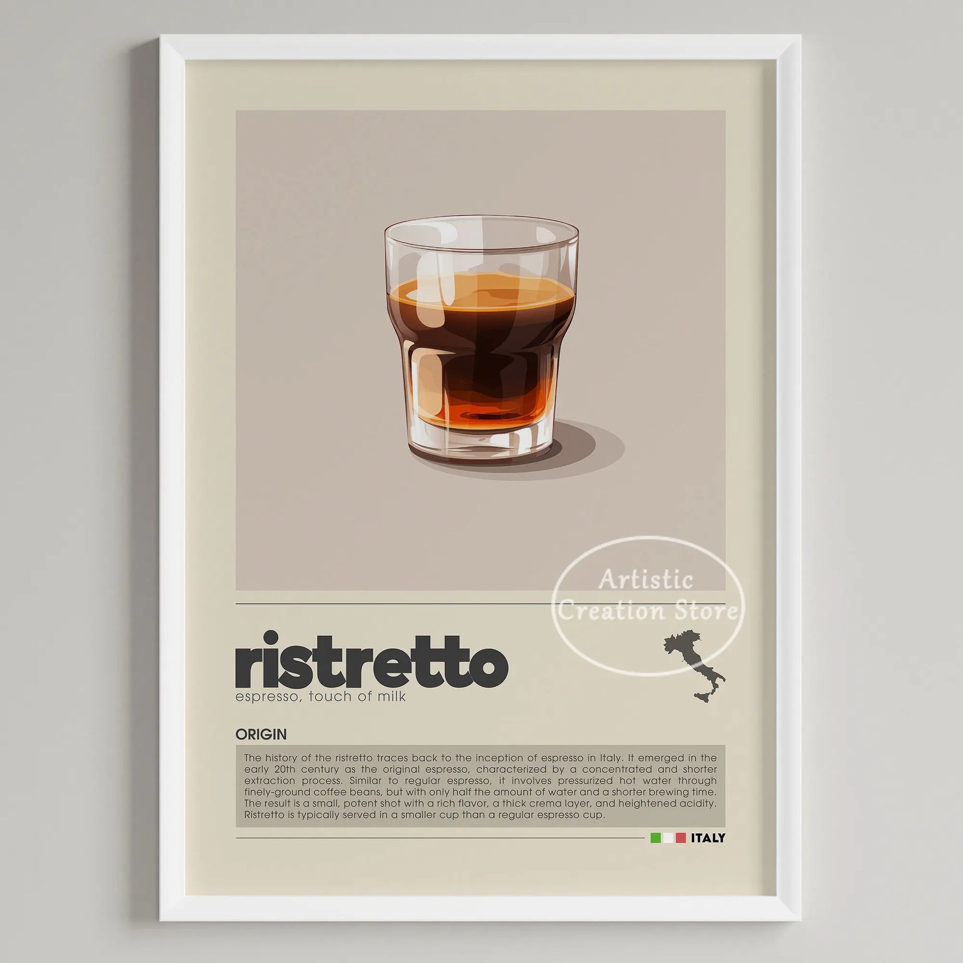 - Œuvre nature morte style aquarelle mettant en vedette des boissons au café pour une cuisine ou salle à manger élégante.
