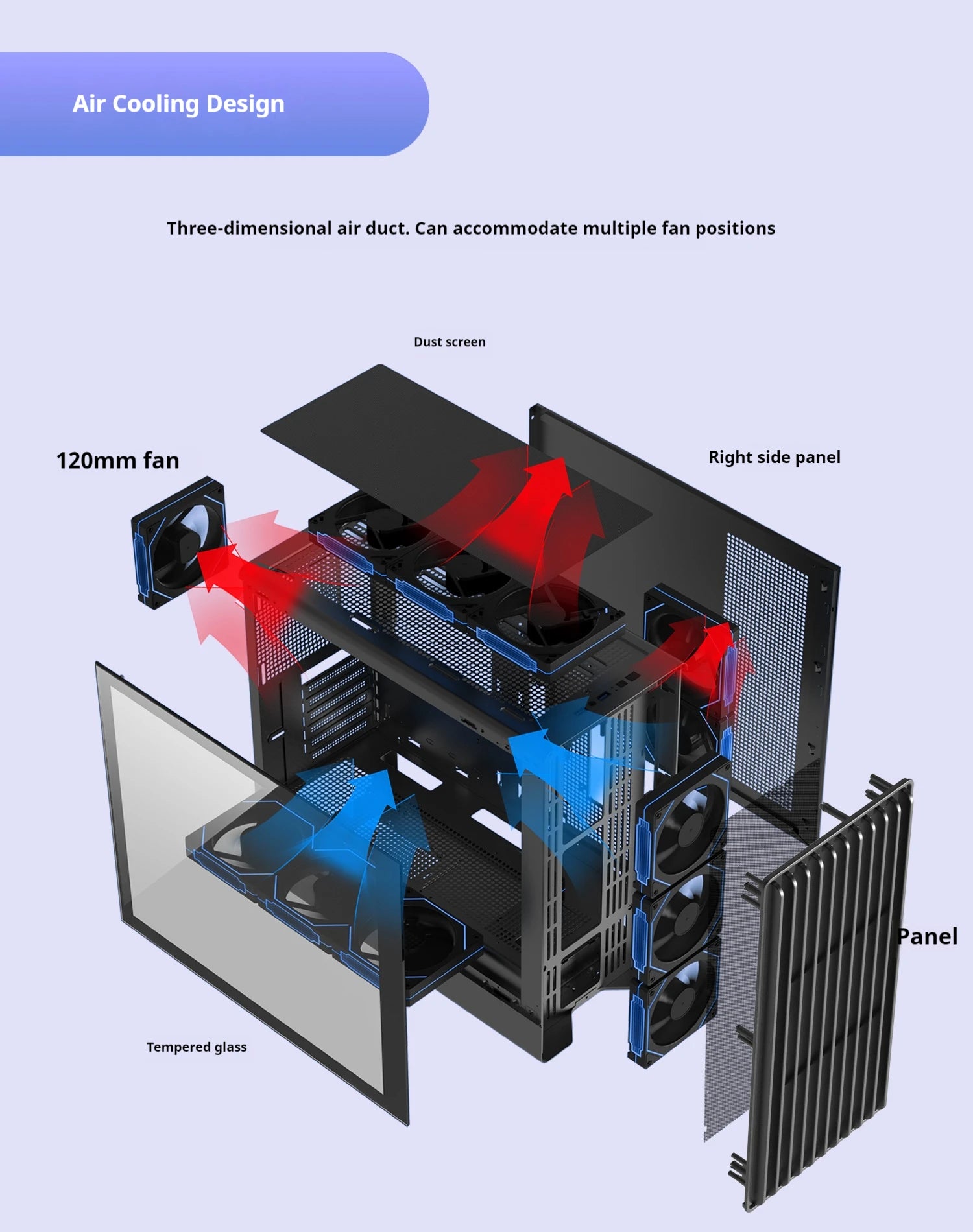 - Support de refroidissement : Compatible avec les radiateurs de refroidissement liquide de 360 mm