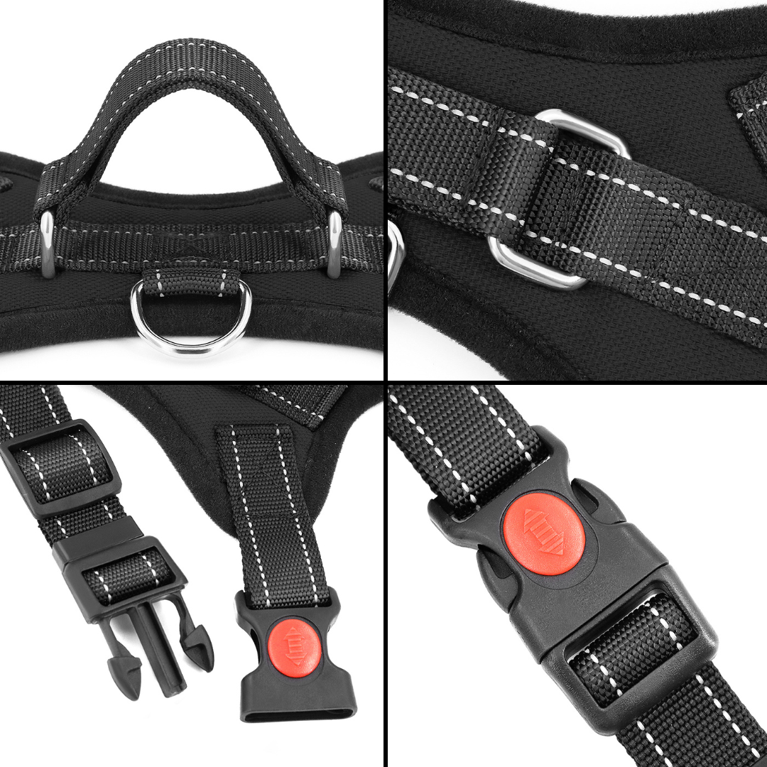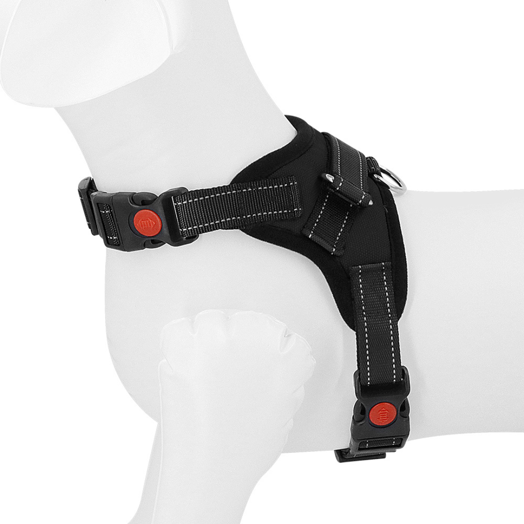 Il Pettorina per Cani No-Choke Regolabile per la Sicurezza è progettato per passeggiate più sicure e confortevoli. Questo design no-choke distribuisce la pressione della trazione su petto e torso per ridurre lo sforzo al collo, mentre l'imbottitura morbida e traspirante mantiene il tuo cane comodo. Il suo design facile da indossare e a regolazione rapida ti permette di metterlo e regolarlo per una vestibilità sicura e a controllo delicato in pochi secondi.