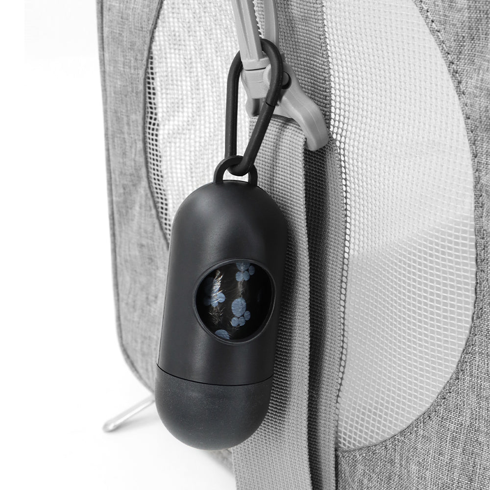 - Borse rifinite con un motivo di impronte di zampa blu su sfondo nero per una facile visibilità