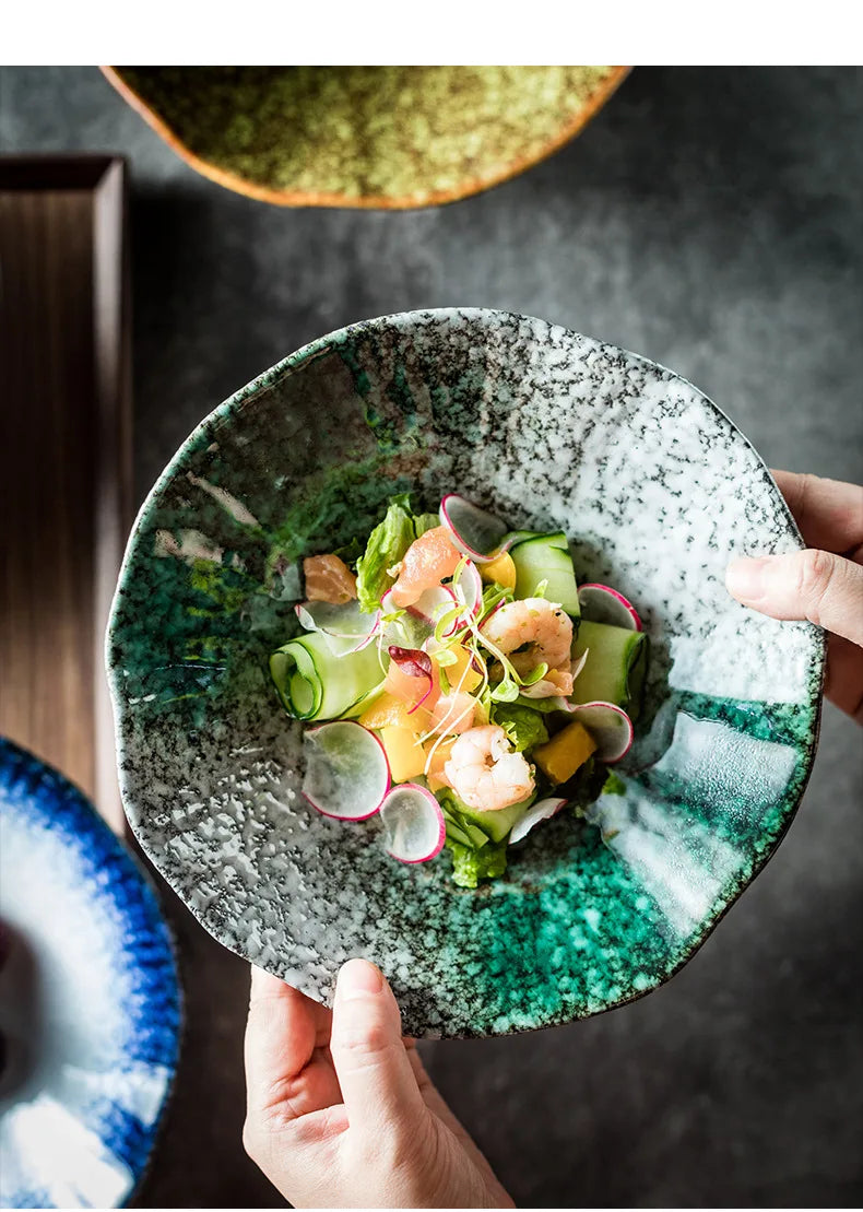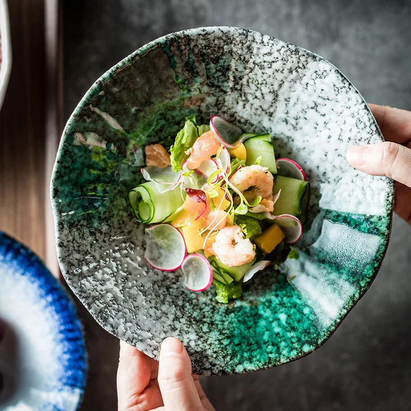 Scopri la raffinata stoviglieria in stile giapponese con questa ciotola in ceramica progettata per noodles, risotto, insalate o snack di frutta. La sua silhouette irregolare e la smaltatura con motivo a loto creano un punto focale elegante per ogni tavola, sia a casa che in un hotel o ristorante. Realizzata per l'uso quotidiano, unisce fascino senza tempo a versatilità pratica.