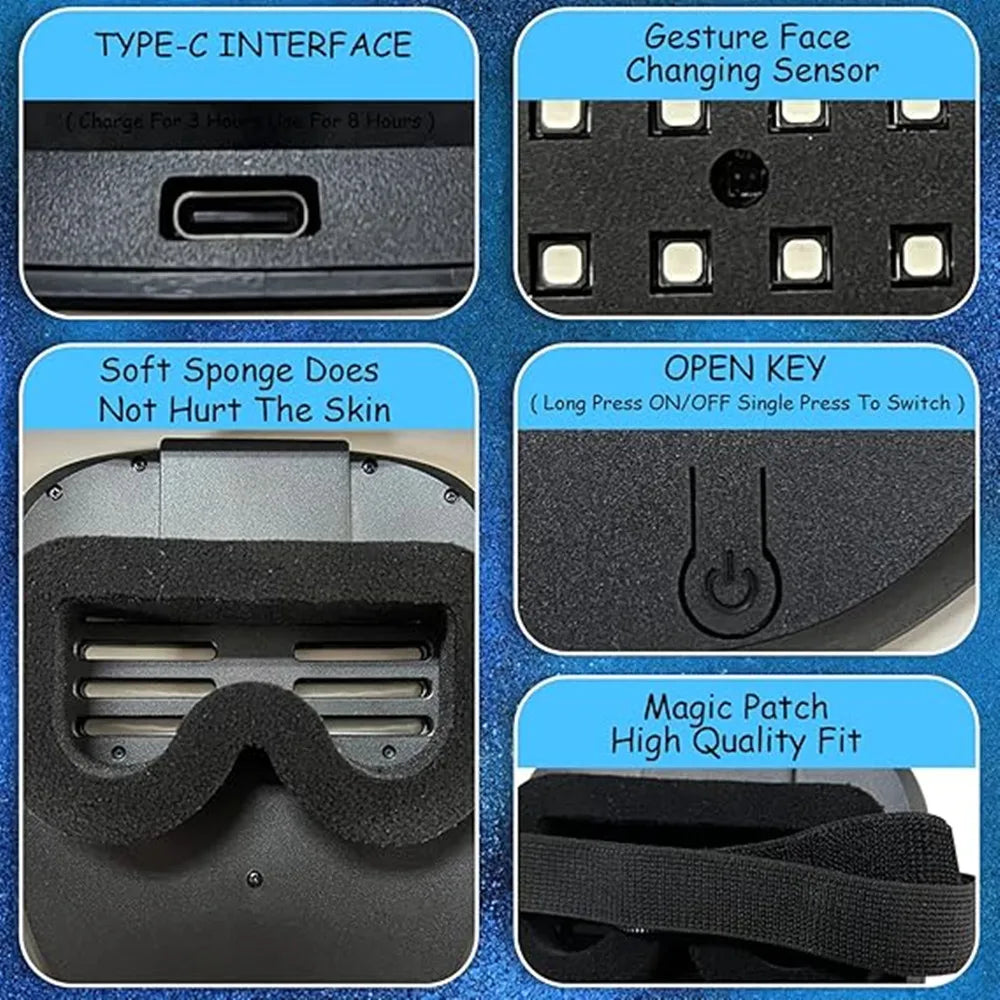 Maschera LED con Sensore di Gesti Maschera Facciale Luminosa Halloween 2025