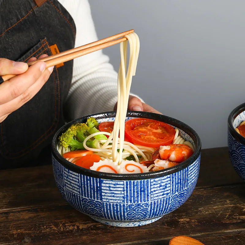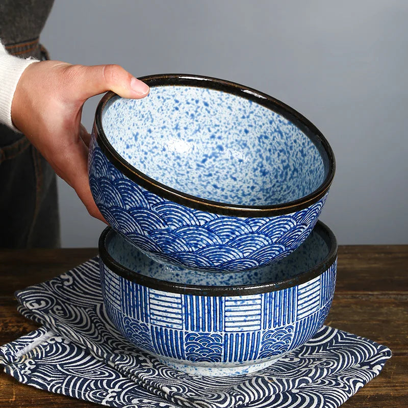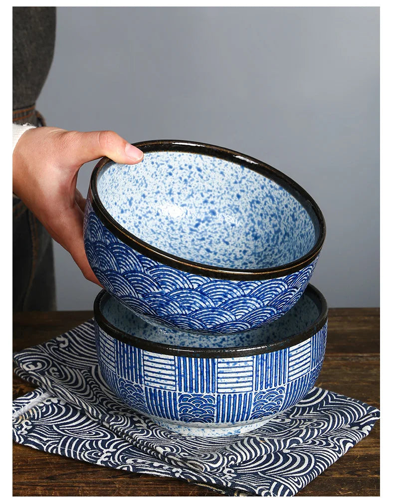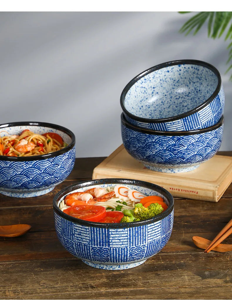 Eleva la tua tavola con la Ciotola per Noodles Retro Onda Qinghai, una ciotola in ceramica di porcellana progettata per la presentazione di stoviglie in stile giapponese. Questa ciotola dipinta a mano, con smalto sottostante, aggiunge un tocco artistico a zuppe, noodles e ciotole saporite, rendendola adatta sia per il servizio in ristorante che per la cena a casa. Durevole e senza tempo, combina un motivo classico con la praticità quotidiana.